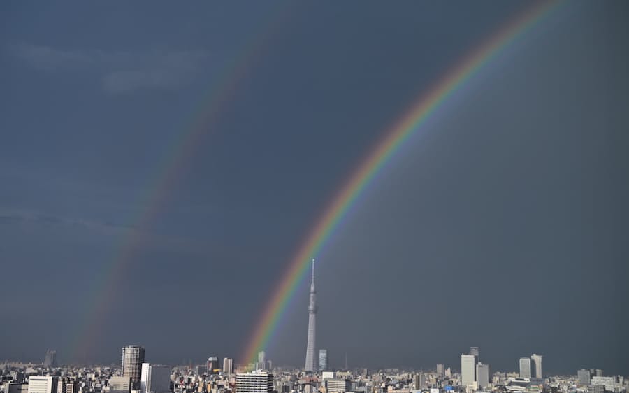 日経 写真映像部 東京都心では雷とともに激しい雨が降りました その直後 東京スカイツリー上空には二重の虹がかかりました 浦田晃之介 小高顕撮影